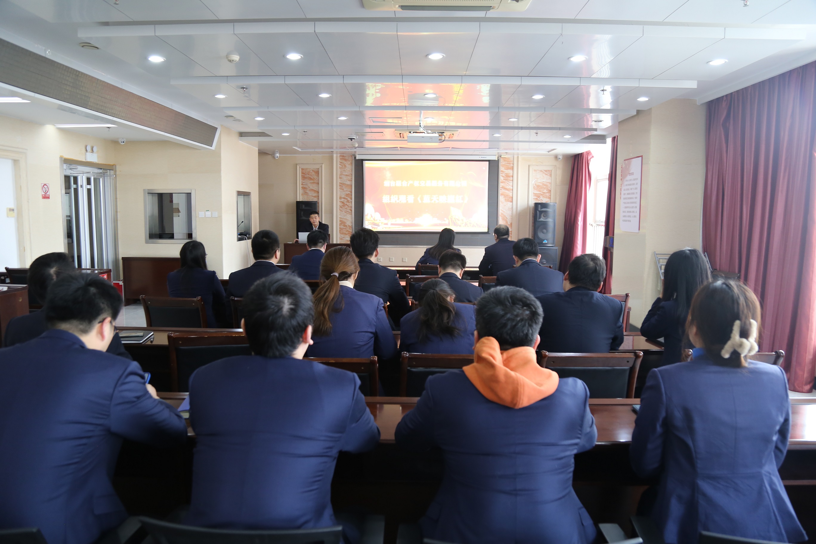 2月10日下午,聯(lián)合產(chǎn)權黨支部組織全體干部職工集中觀看《藍天映旗紅》電視片,集團黨群部派人列席指導會議。