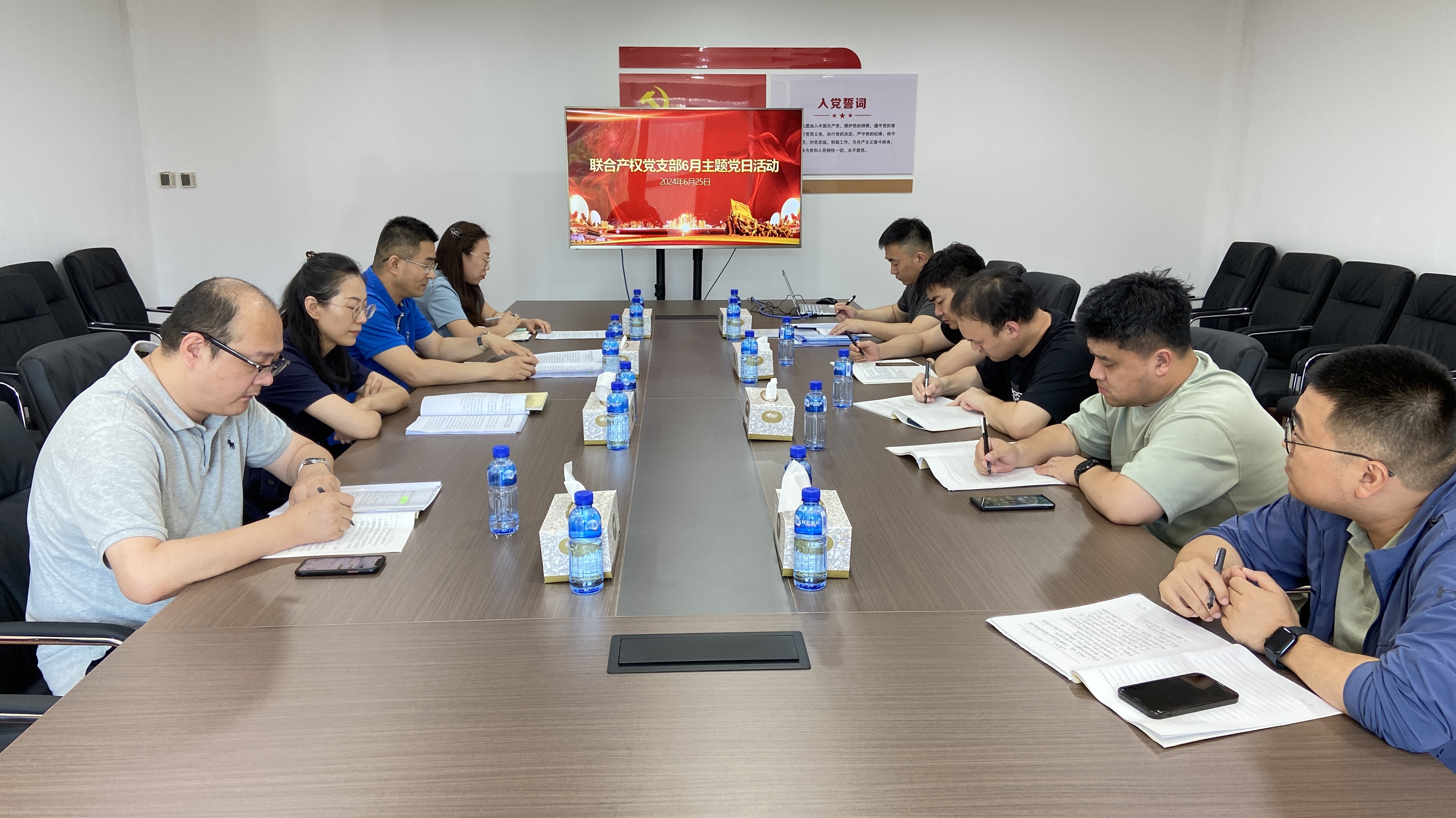 會議首先開展集體學(xué)習(xí),學(xué)習(xí)“第一議題”《習(xí)近平總書記在山東考察時的重要講話精神》》并進行交流發(fā)言;隨后開展全面從嚴(yán)治黨調(diào)研活動,聯(lián)合產(chǎn)權(quán)黨支部匯報上半年全面從嚴(yán)治黨主體責(zé)任落實情況,車向前同志做點評發(fā)言;支部副書記講授“學(xué)條例、明規(guī)矩、知敬畏、守底線”專題紀(jì)律黨課;學(xué)習(xí)《中共中央辦公廳印發(fā)在全黨開展黨紀(jì)學(xué)習(xí)教育的通知》、《習(xí)近平在2024年春季學(xué)期中央黨校(國家行政學(xué)院)中青年干部培訓(xùn)班開班之際作出重要指示》、《關(guān)于運用典型案例加強<中國共產(chǎn)黨紀(jì)律處分條例>學(xué)習(xí)的通知》、《中央黨的建設(shè)工作領(lǐng)導(dǎo)小組關(guān)于認(rèn)真學(xué)習(xí)領(lǐng)會習(xí)近平總書記關(guān)于全面加強黨的紀(jì)律建設(shè)的重要論述扎實開展黨紀(jì)學(xué)習(xí)教育的通知》、《中國共產(chǎn)黨紀(jì)律處分條例》第8-9章(第94-129條)重點內(nèi)容;黨員代表圍繞“六項紀(jì)律”進行交流研討;集中學(xué)習(xí)《中國共產(chǎn)黨一百年大事記(1936-1940)》;觀看《中國共產(chǎn)黨紀(jì)律處分條例》解讀微視頻 —本次《條例》修訂體現(xiàn)了哪些特點;開展重溫入黨誓詞及交流座談活動;最后,公示了6月份黨費收繳情況。
