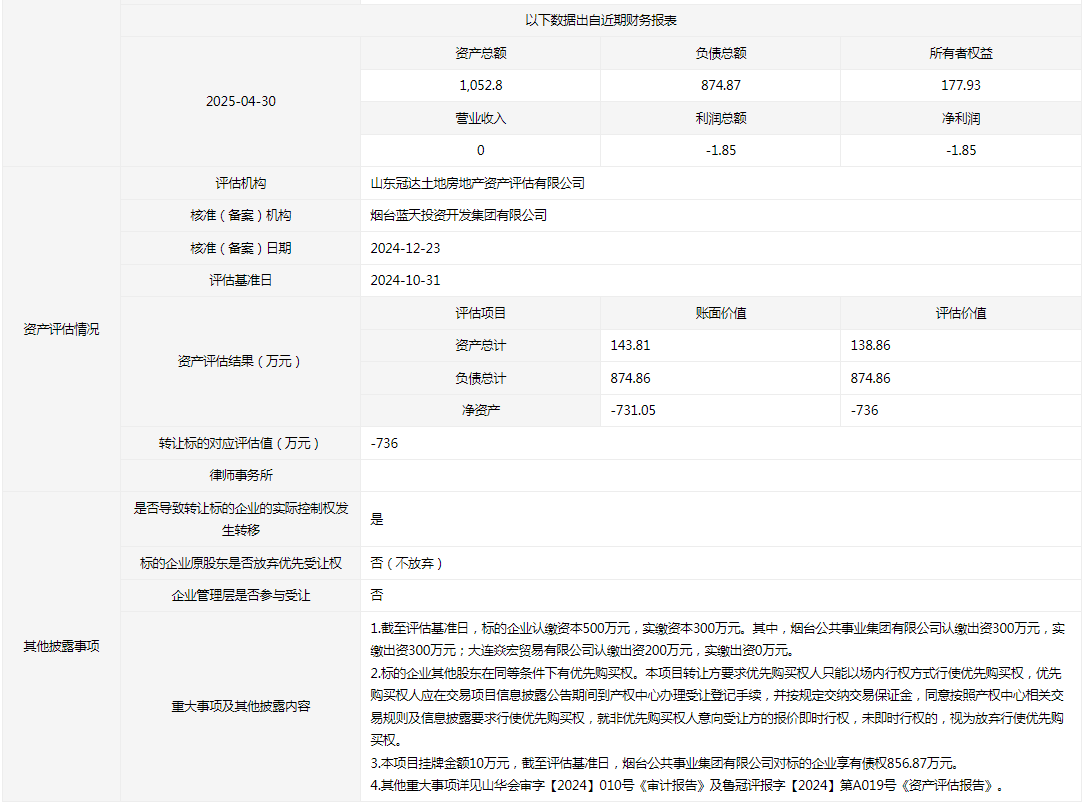 轉讓方:煙臺公共事業(yè)集團有限公司