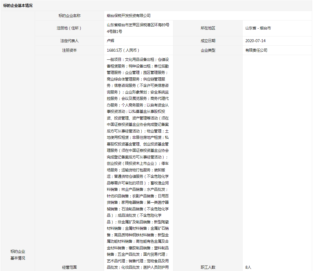 煙臺保稅開發(fā)投資有限公司16%國有股權(quán)