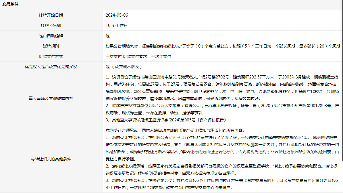 轉(zhuǎn)讓方:煙臺業(yè)達文旅集團有限公司