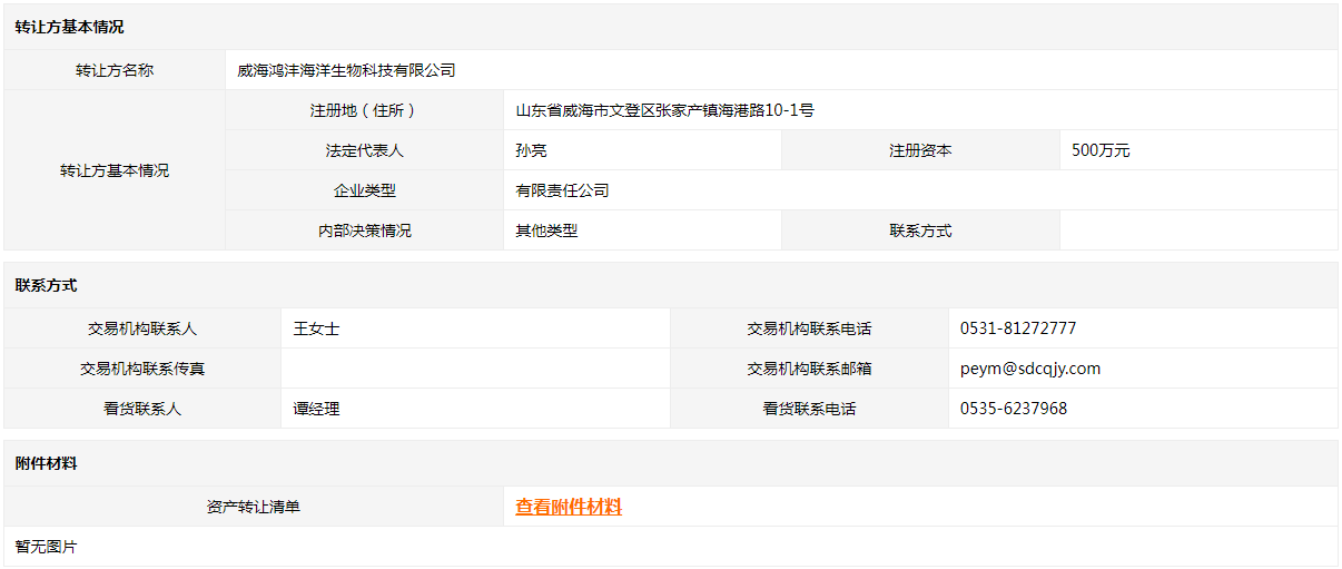 轉(zhuǎn)讓方:威海鴻灃海洋生物科技有限公司