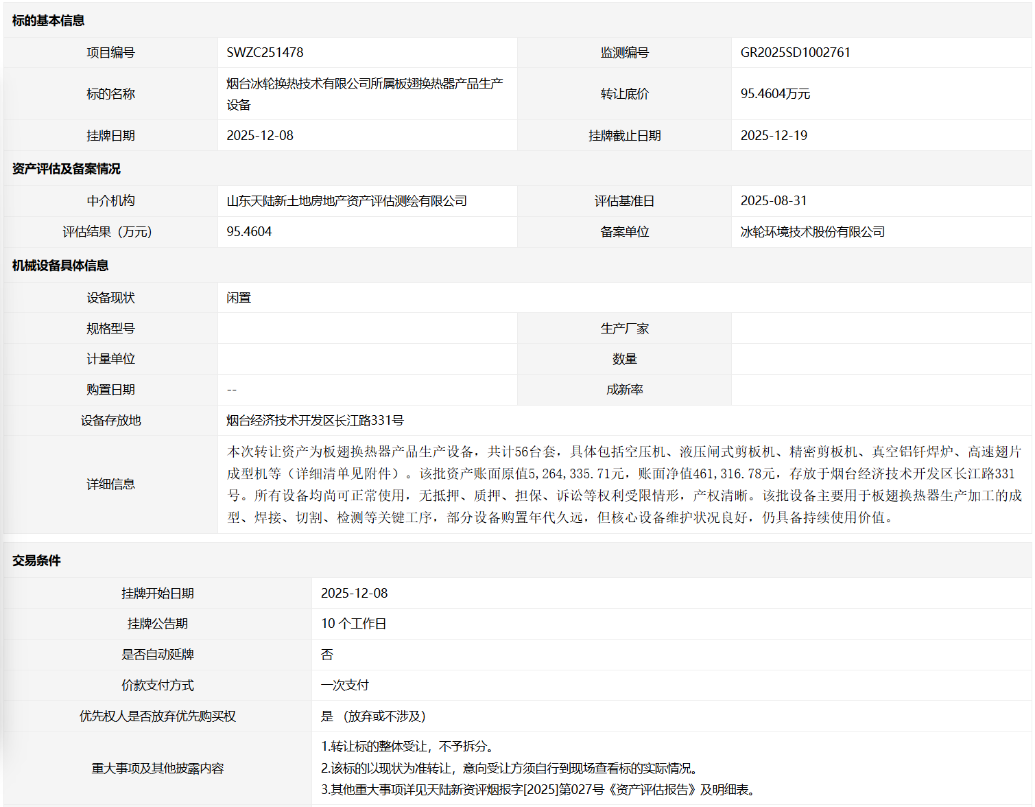 轉(zhuǎn)讓方:煙臺冰輪換熱技術(shù)有限公司