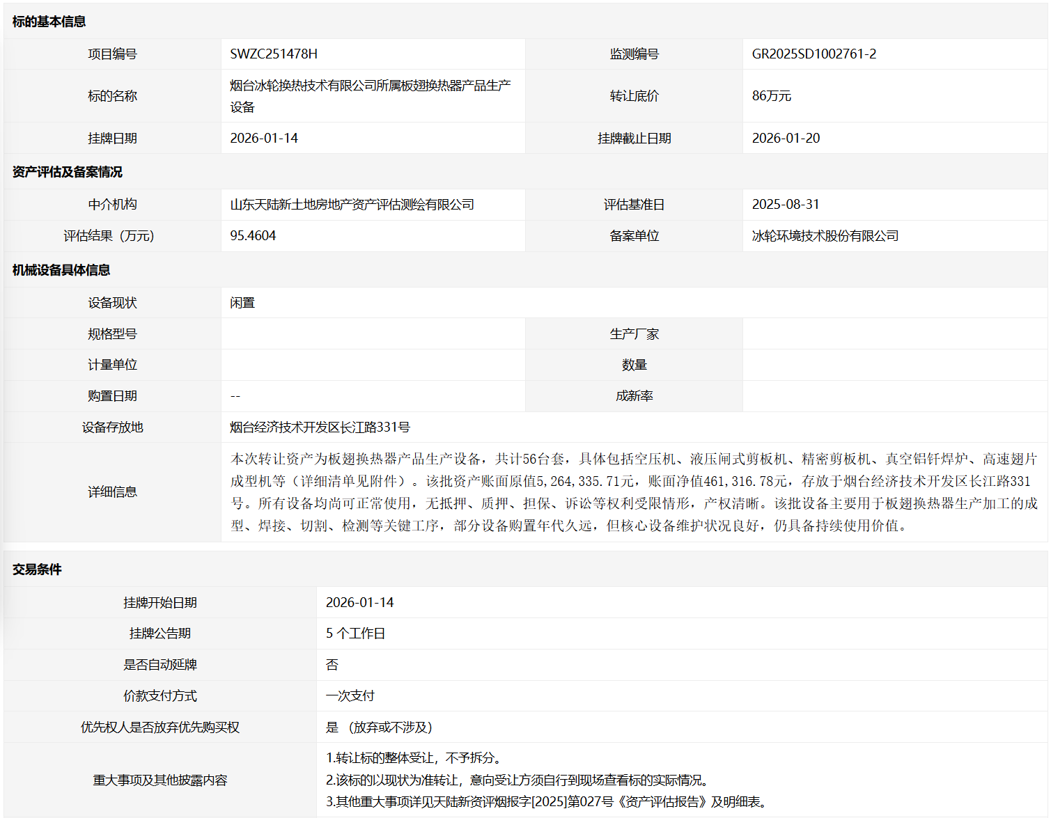 轉(zhuǎn)讓方:煙臺(tái)冰輪換熱技術(shù)有限公司