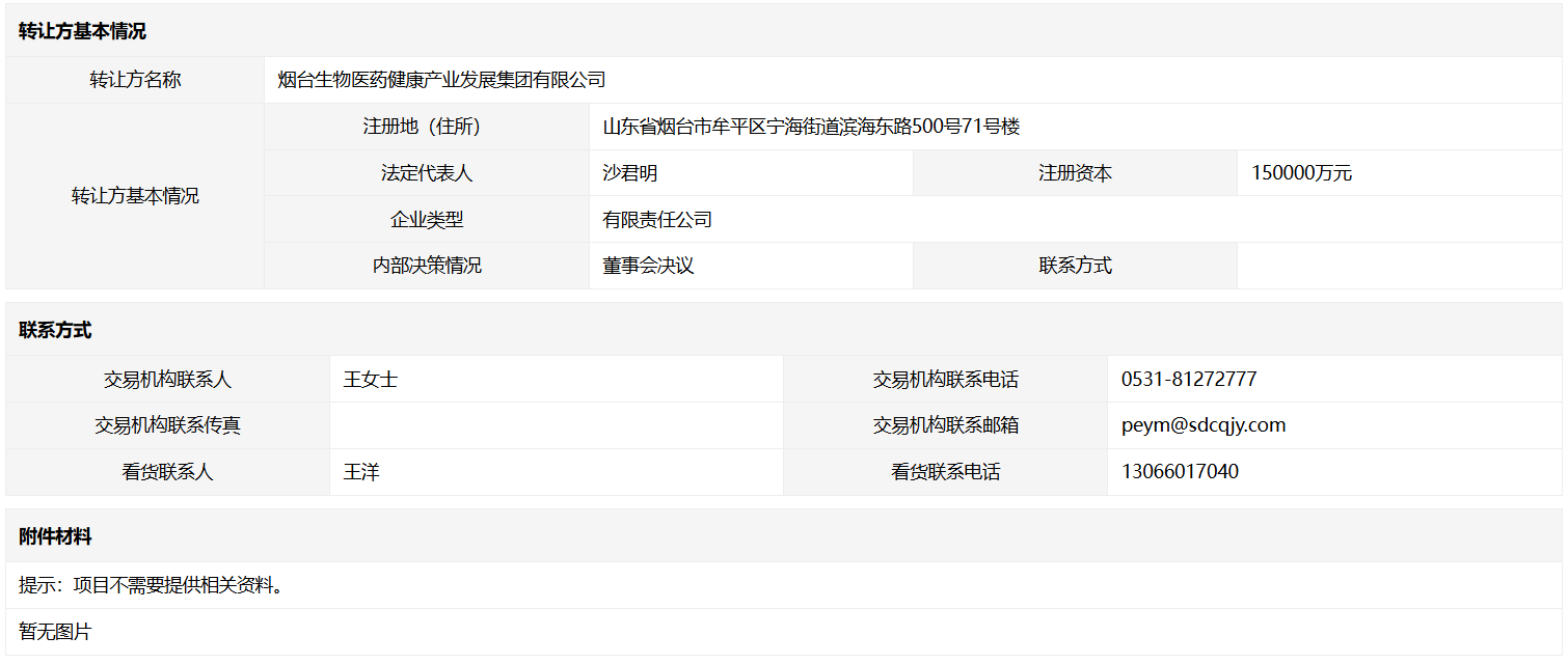 轉(zhuǎn)讓方:煙臺生物醫(yī)藥健康產(chǎn)業(yè)發(fā)展集團有限公司