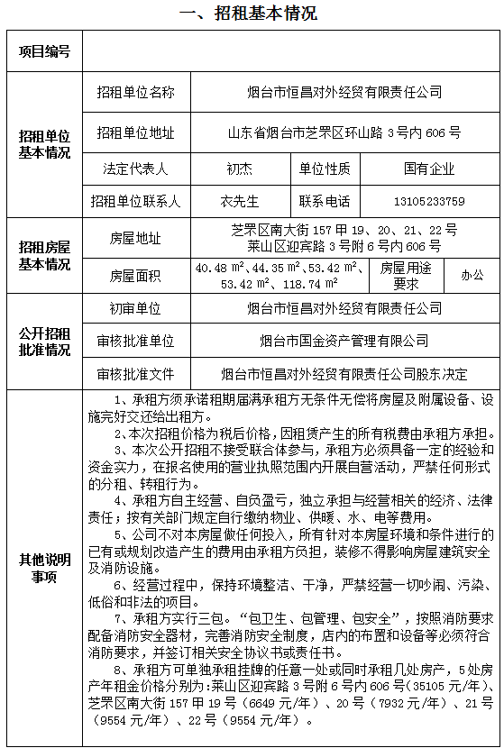 煙臺市恒昌對外經(jīng)貿(mào)有限責任公司5處非住宅房產(chǎn)